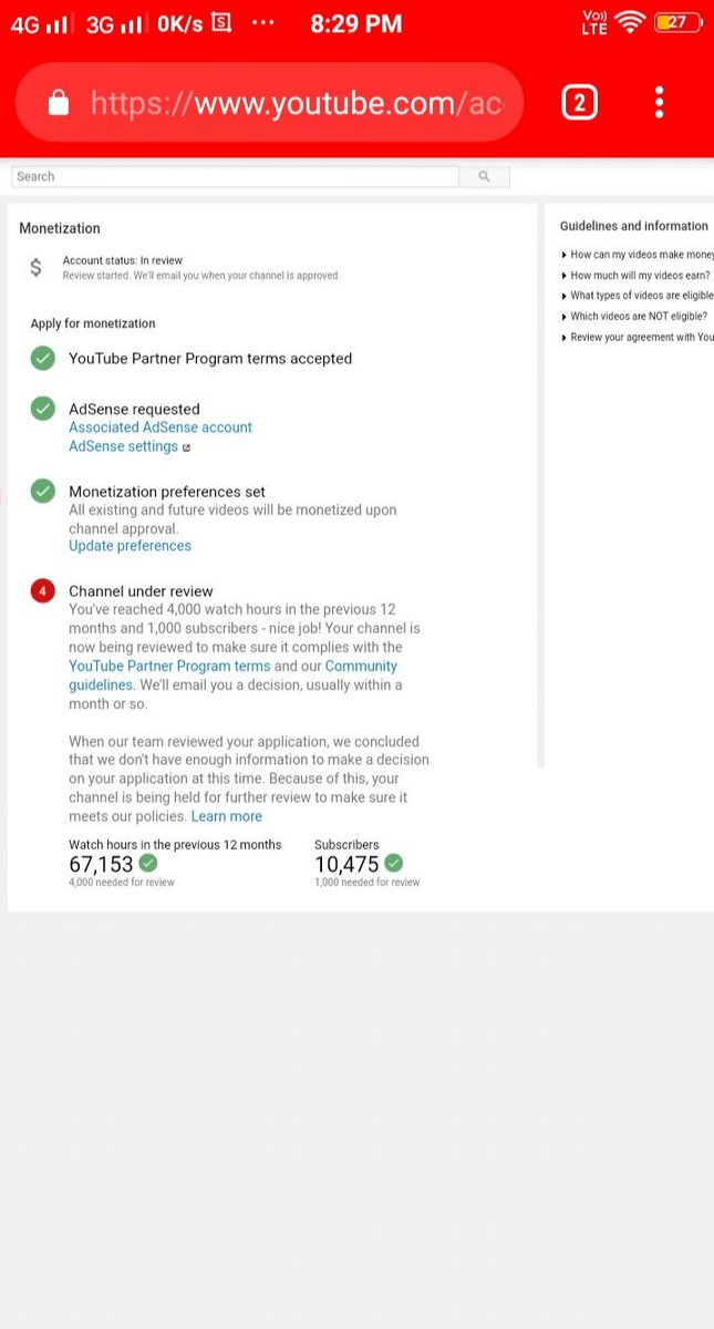 @TeamYouTube As per Youtube policy we have successfully completed 1k subscribers and 4k hours of watch time. For monetization we have applied on 18th Feb 2019 but still it is in review.
