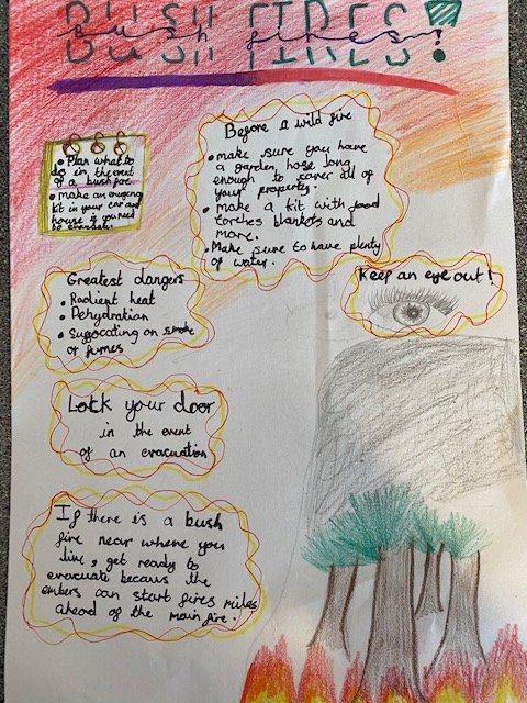 Further up the school, the theme of Aboriginal art continued in Year 4 and Year 5. In Year 6, they learnt more of the science behind the bush-fires and created warning posters incorporating the knowledge they had acquired.pic.twitter.com/iXI0cyZQCy