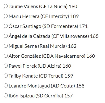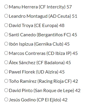 #11HdBDeLaAfición del mes de noviembre en la categoría de#MejorPortero de#SegundaRFEF Votos