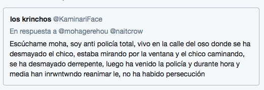 Respeto muchísimo a la Policía, pero a veces y algunos se les va de las manos... Y como cualquier otro ciudadano deben hacerse responsables de sus actuaciones desmedidas...
