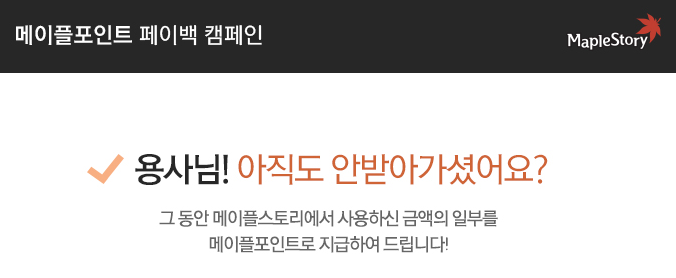거기 용사님 HOLD UP! 아직도 안받아가셨어요? 그 동안 사용하신 금액의 일부를 메이플포인트로 돌려드리는 메이플포인트 페이백 캠페인이 내일(12/16) 종료되니, 어서 홈페이지에 접속하셔서 확인 GO!pic.twitter.com/ffULjdo2Ii