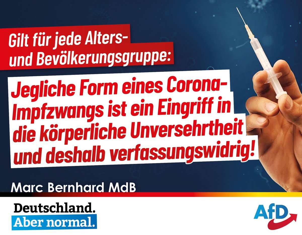 #Impfzwang ab 18 ist gescheitert! Jetzt sind die über 50-jährigen im Visier! Freiwilligkeit, Vernunft und Toleranz sind jetzt in der Sache geboten und die Regierung sollte unsere mündigen Bürger hierin unterstützen. Der geplante#Corona-Impfzwang muss schleunigst vom Tisch!pic.twitter.com/Od1V5VEAP7
