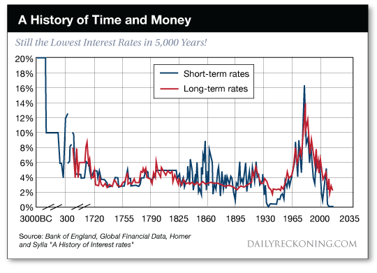 5,000 Years of Interest Rates: Part 1: https://dailyreckoning.com/5000-years-of-interest-rates/ … Part 2: https://dailyreckoning.com/5000-years-of-interest-rates-part-ii/ … by