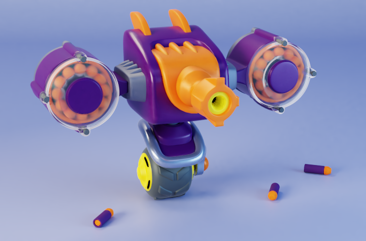 Yeah, actually all brawlers are somehow based on real toys. Or they have elements of a certain toy. And yeah, this one has some sort of nerf gun drums on the side. I think, I´m to close with this one. Hope it doesn´t bring up copyright issues. Maybe I have to change it a bit.