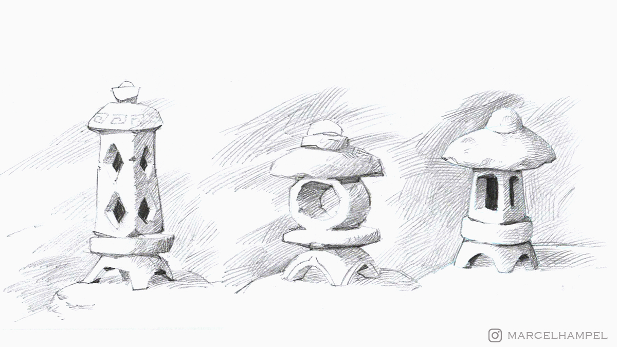 New sketches and thumbnails with little stone lanterns. Damn, they are so fun to draw!