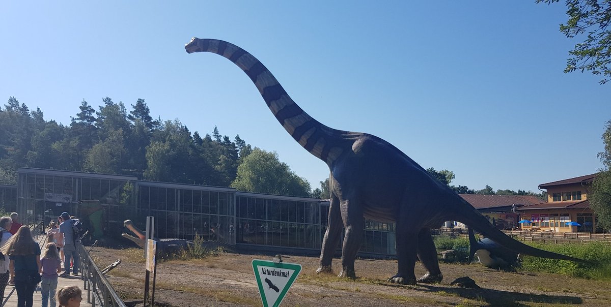 Having fun in a dinosaur park. Their huge sizes are breathtaking.