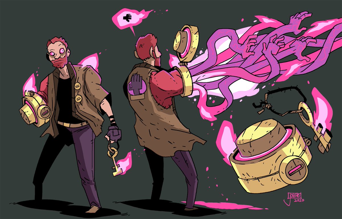 Hudson the Handra! Containing a gigantic, festering growth of witchflesh in his right arm, Hudson can use an ancient key and and stone plates to somewhat control the chaotic eruptions! Witchflesh brutally hexes all it touches and grabs at so he has to be careful! #characterdesignpic.twitter.com/OXfSKA7Q14