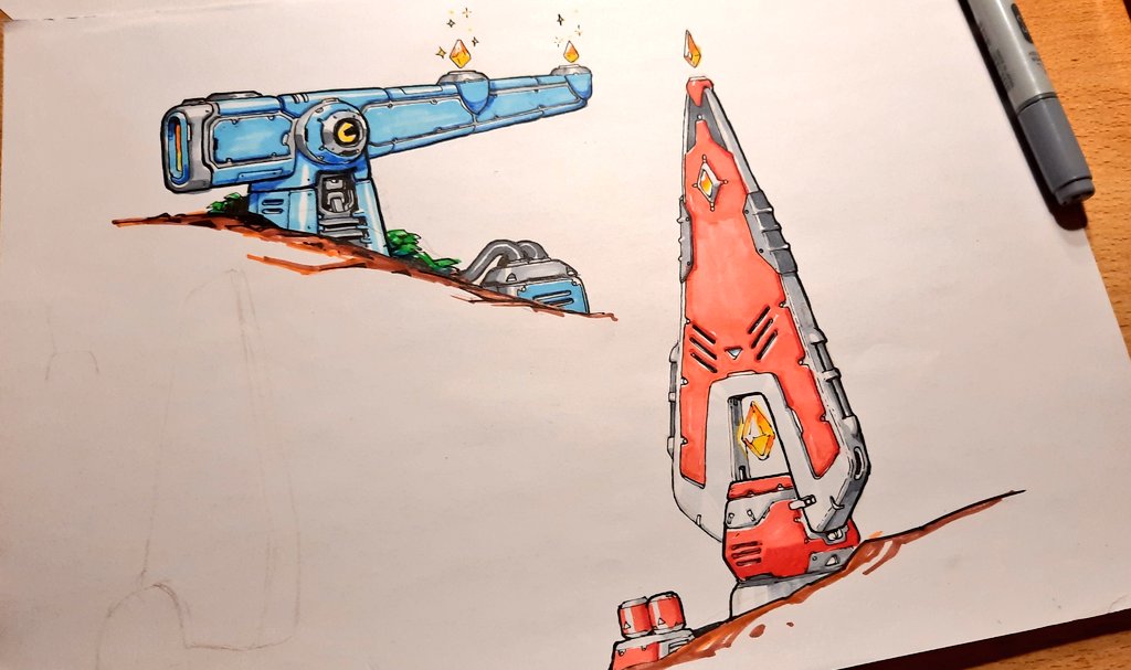 More exploration sketches on paper of possible bg objects for my mage bots ... I'm not an experienced hardsurface/scifi artist, so this may look odd and senseless