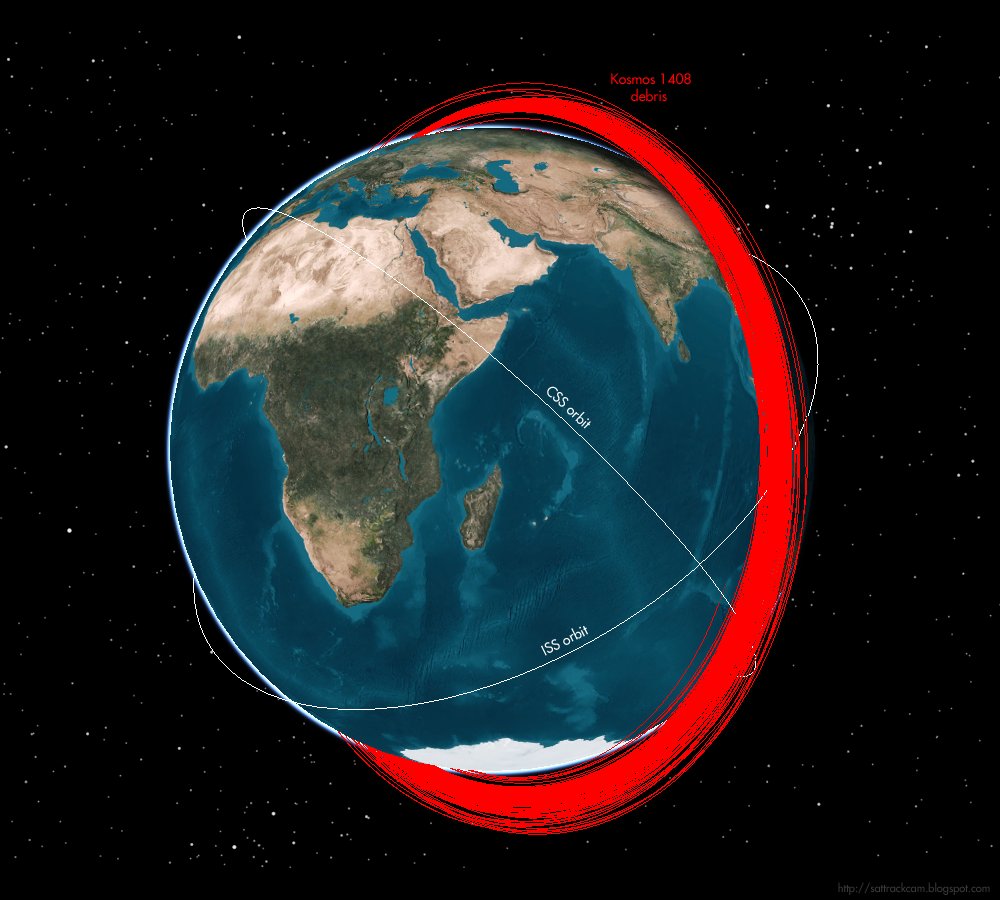 #Kosmos1408 fragments over a large altitude domain in Low Earth Orbit, creating a threath to many satellites.pic.twitter.com/wTIqhpidv9