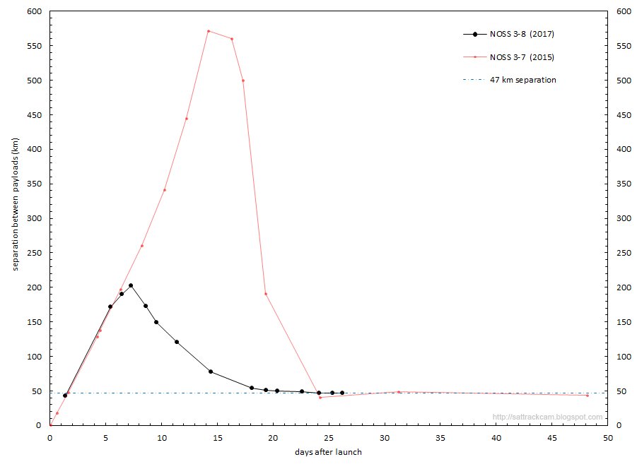 According to our obs, the #NROL79 payloads (a pair of US Navy SIGINT spysats, NOSS 3-8) have stabilized their mutual distance at ~47 km:pic.twitter.com/PGP3RicCiL