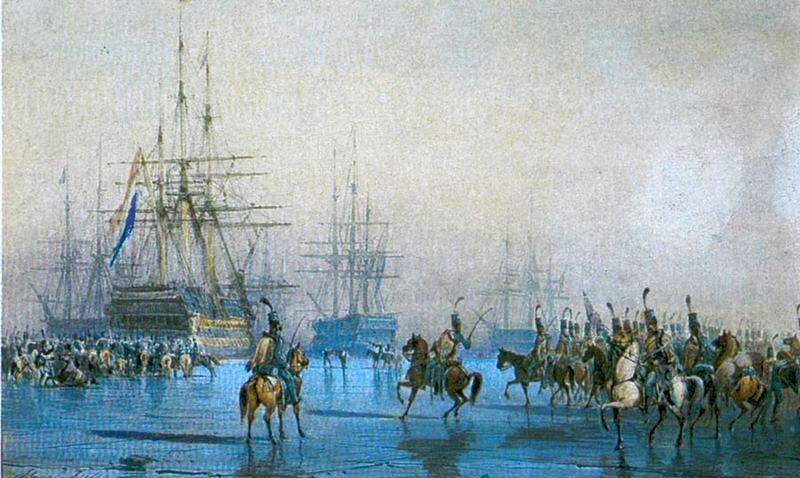23 janvier 1795 : Après la prise d’Amsterdam, un détachement interarmes est envoyé au Helder par le général Jean-Charles Pichegru pour s'emparer de la flotte hollandaise, prise dans les glaces du Texel. 14 navires avec 850 canons sont capturés sans aucune perte française.pic.twitter.com/752TXQI7R0