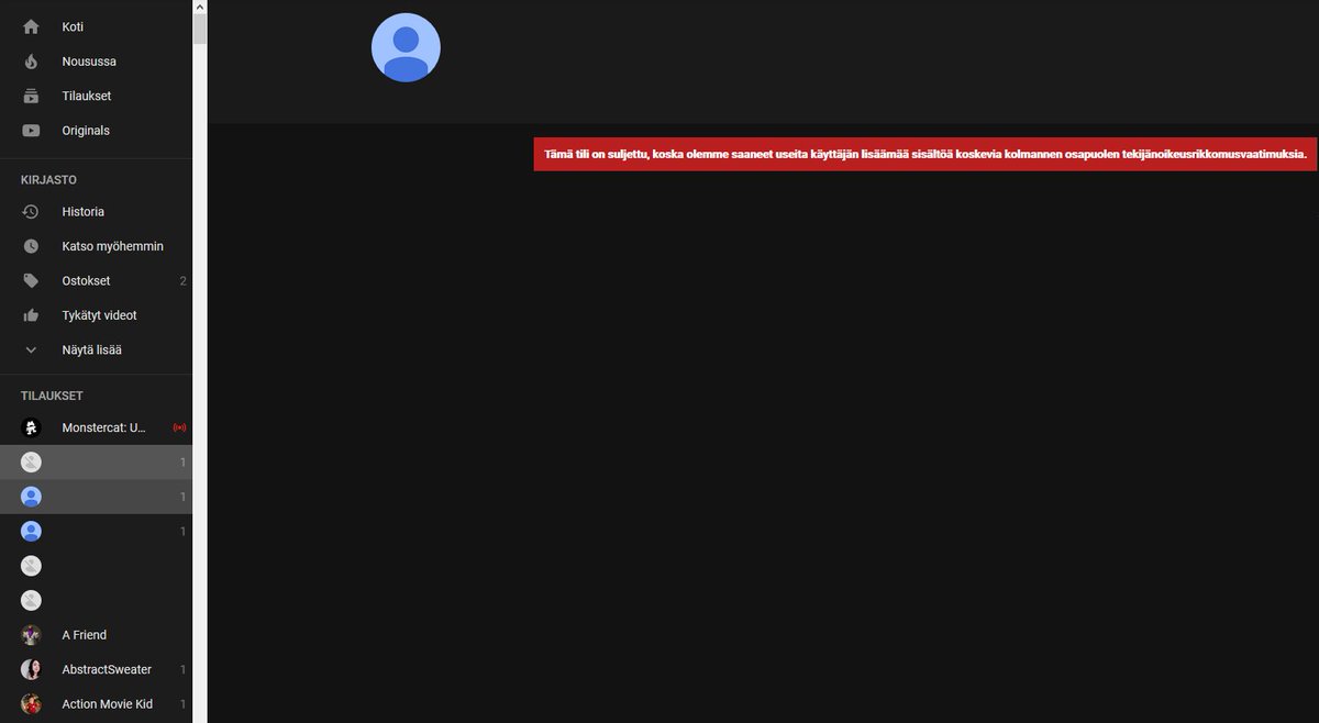 Wow, @TeamYouTube has there been a crack down on channels? 5 Channels all at same time were taken down. I can only access their URL's, but it's very weird to see that many take downs at once.pic.twitter.com/01Xaf7zDb6