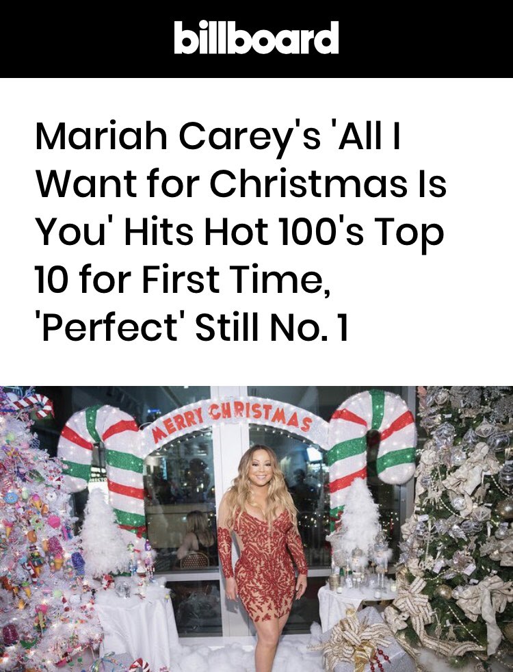 @MariahCarey#AllIWantForChristmasIsYou#AIWFCIY is a top ten record