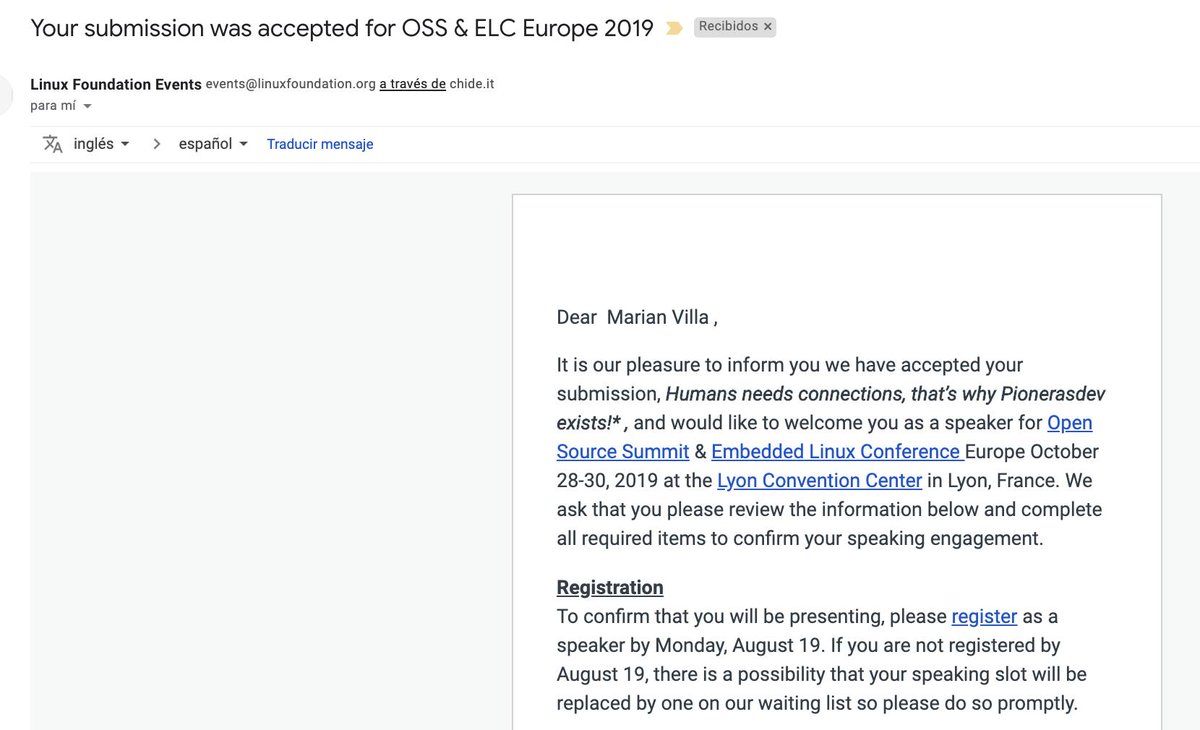 @linuxfoundation Gracias por aceptar nuestra propuesta, es todo un HONOR 😍💞 y me hace MUY FELIZ. Tristemente 😢 no podré ser parte este año porque no cuento con los recursos para estar allí en Octubre. Pero suena como una promesa... 💪🤓pic.twitter.com/rw8SXLltCI
