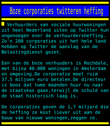 Enorme aanslagen die ten koste gaan van de huurders. Want hadden ze bedacht het vet moest van de botten.