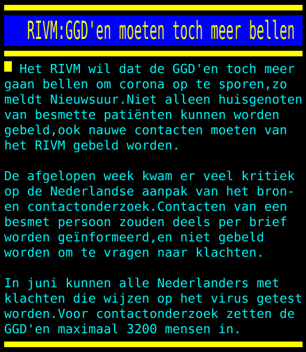 ..... om over een paar weken van de baas van de GGD in NL te horen dat hij van het RIVM daarover nog geen brief heeft gehad ....