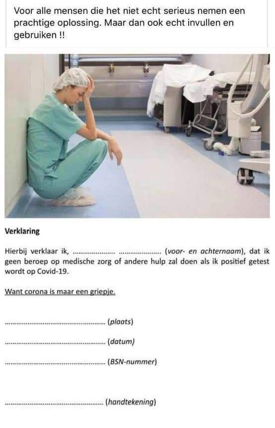 Ja, dan vul jij ook in dat je van medische zorg afziet omdat je alcohol drinkt, te hard rijdt in de auto, te veel suikers tot je neemt, dat je tussen heel veel vee woont met ongezonde lucht. Dat je ongezond voedsel tot je neemt.