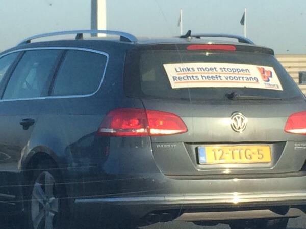 Geen grap, dit staat naast mij in de file. De VVD campagne komt nu echt op stoom hoor! #treurig #gr14pic.twitter.com/um6PaM1ynC