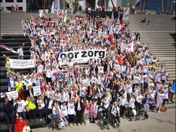 Zorgmedewerkers maken strijdbare actiefoto aan de start van de Mars voor Zorg door Utrecht #zorgberaad #fnvvoorzorgpic.twitter.com/owJNtnANHs