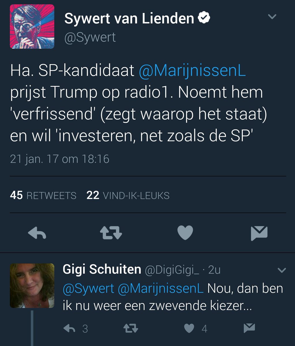 Echt te gek. Dus je wilt niet luisteren naar wat ik heb gezegd maar alleen maar wat anderen erover tweeten. Ai, ai, ai...