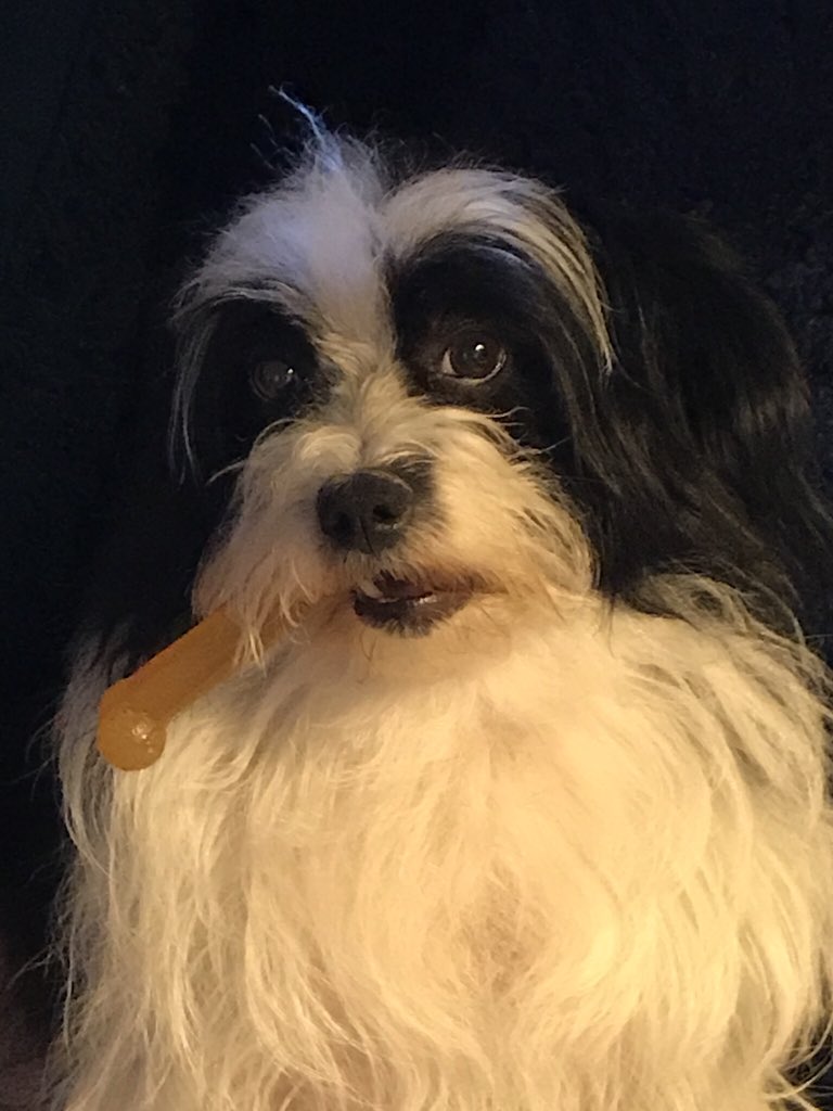 This is Wally - probably kindest dog out there, he doesn’t even mind giving the other dog his toy! We rescued him six years ago