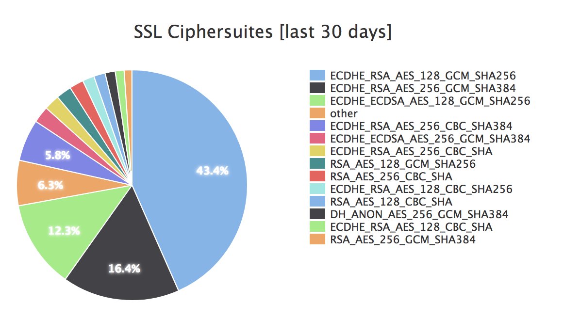 Are we heading for a crypto monoculture in TLS? Latest figures from ICSI Cert Notary (https://notary.icsi.berkeley.edu/ ) now have AES-GCM cipher suites at 79.2%, CBC down to 14.4% and 6.3% in the mysterious "other" category.pic.twitter.com/N9PqVKOixz