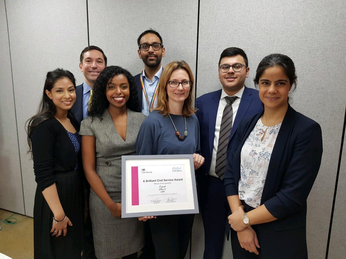 @hmtreasury Ethnic Minority Network and Diversity and Inclusion team on winning@cabinetofficeuk A Brilliant Civil Service Award for improving diversity and representation at HMT. An honour to be involved! Credit also to former seniors Sharon White & Lindsey Fussellpic.twitter.com/Ns8dsbszvP