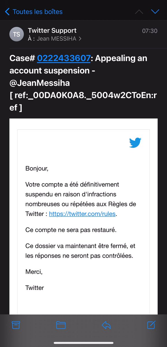 @TwitterFrance de#JeanMessiha a été supprimé. Ma page@FacebookFR, elle, est toujours restreinte. Il est grand temps que les politiques mènent cette bataille contre la censure. Nous sortirons des propositions à ce sujet en septembre avec le CAP de@ISSEP_Lyon.pic.twitter.com/DyBNck5JtB