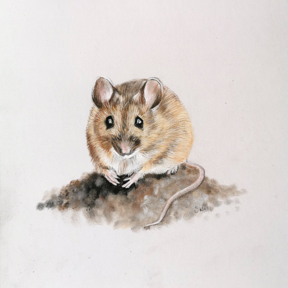 Cute little woodmouse that lives in my garden, love to watch them scurrying about under the feeders. Original pastel drawing.
