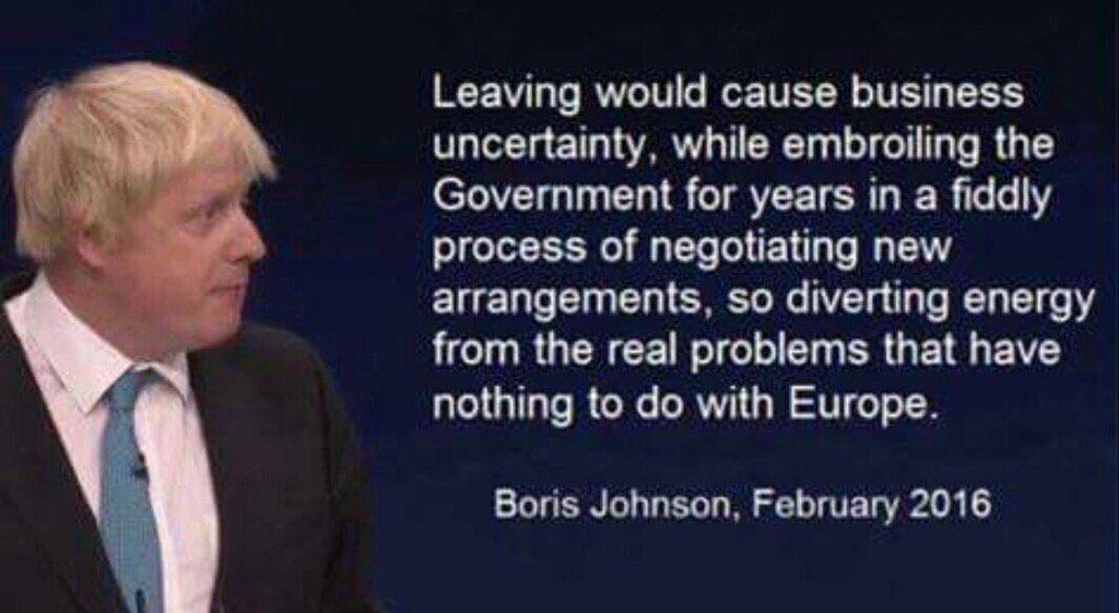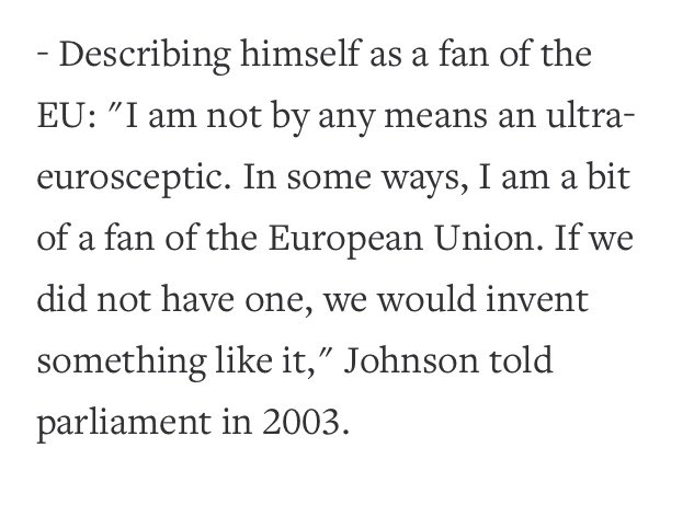 Until he decided that becoming a Brexiter was a good long term career move, Boris Johnson was a supporter of Britain’s membership of the EU who repeatedly praised its strengths while openly warning about the perils of leaving.pic.twitter.com/CSeDmUEoAz