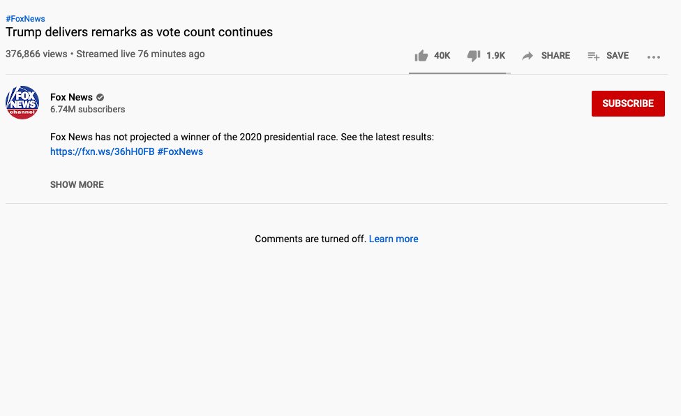 @FoxNews turned off the comments on their YouTube video of Trump's remarks from earlier. https://youtu.be/Nvu1P5VFVsQ pic.twitter.com/g3kuUqMvUo
