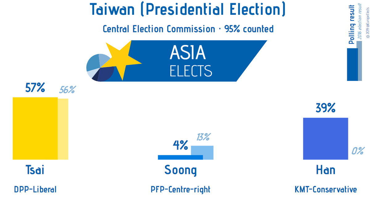 @iingwen for her landslide victory in the#TaiwanElections. Since Years Taiwan is a shining light of hope for democracy’s in#Asia All the best for the work ahead in very challenging times & a conflicted area with#China putting pressure on HK & the region.https://twitter.com/AsiaElects/status/1215975831136350209 …