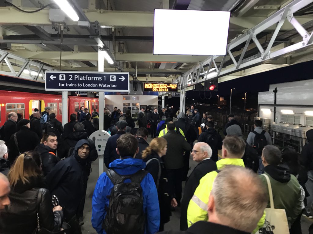 #radiosilence for 15 mins and a stationary train, we have just been advised that there is a trespasser on the line at New Malden!