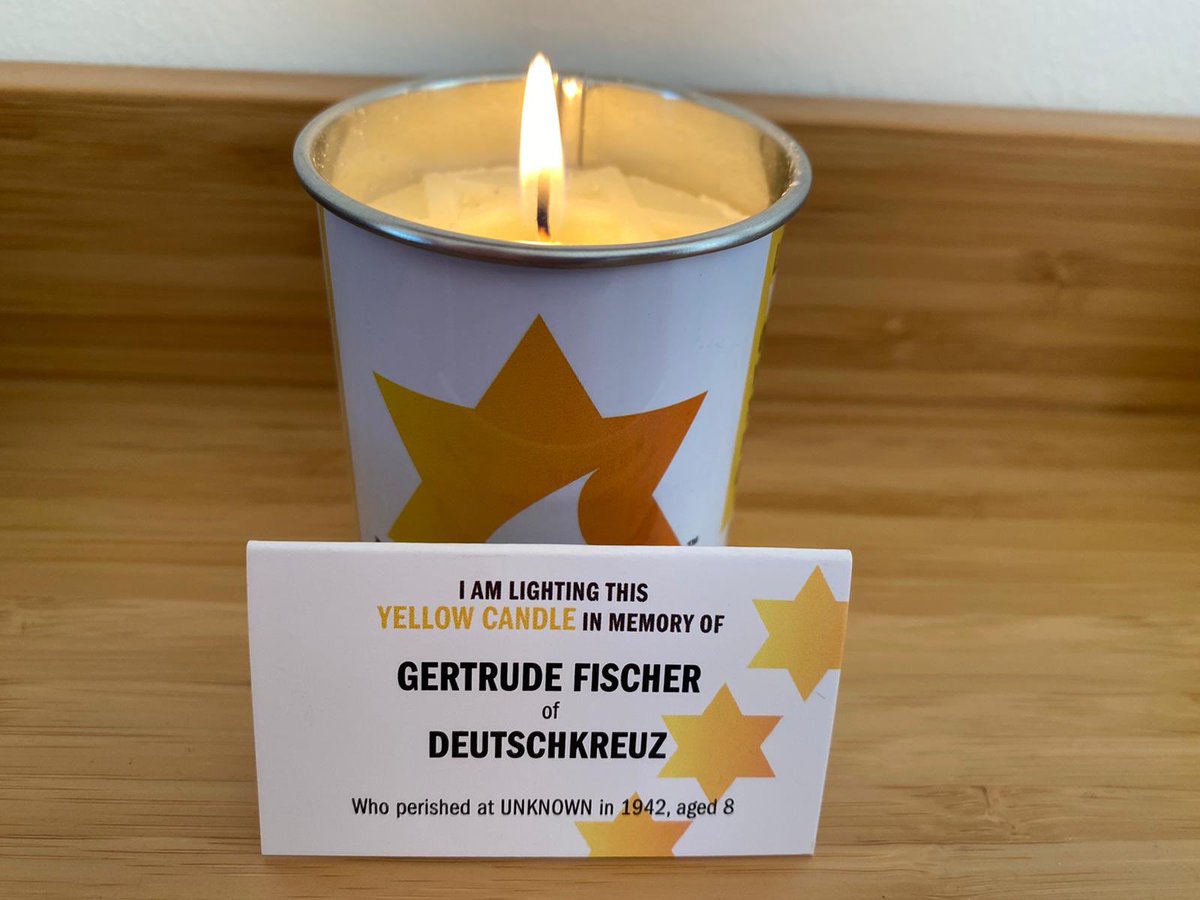 🕯Earlier this evening I lit a #YellowCandle in memory of Gertrude Fischer of Deutschkreuz, who was murdered in 1942 aged just 8. She was one of the million and a half Jewish children murdered by the Nazis & their collaborators.pic.twitter.com/d9V8Gyn3NB