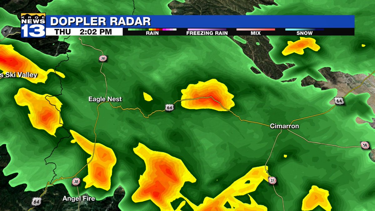 Here is the cell that prompted the Flash Flood Warning over the #UteParkFire. The fire burned right along the road and Cimarron River from Cimarron west to Ute Park. Exactly where the heaviest rain is falling. #nmfire #nmwxpic.twitter.com/jghUSVqzPj