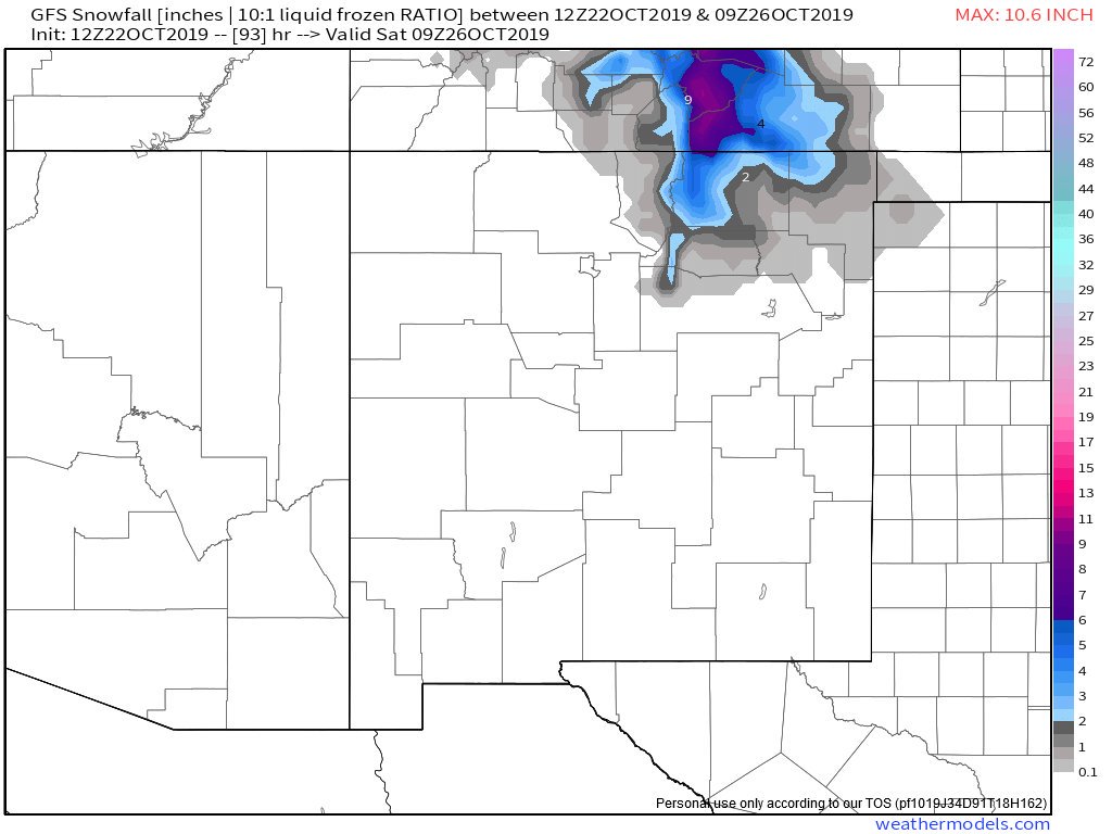 Check this out. The model that was depicting a scraper storm with lesser snow impacts is coming into line with higher snow numbers. Image one is from this morning. Image 2 from this afternoon. Image three from tonight. Spot a trend? #nmwxpic.twitter.com/ni08F1MGu6