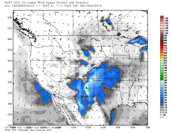 It will only get worse wind wise. Here are the projected wind speeds tomorrow around noon. #nmwxpic.twitter.com/RaNR8j5K
