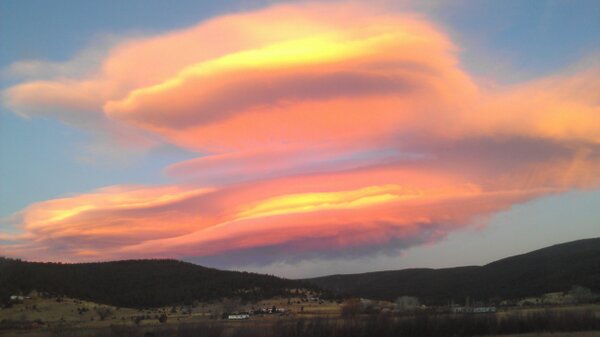 Stacked lenticular clouds from Mora County #NM. Thanks to Emma for the picture. #nmwxpic.twitter.com/uJzEBBX4