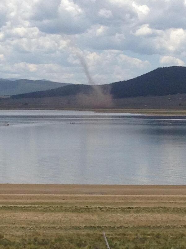 Great shot of a land spout along shores of Eagle Nest Lake #NM Friday. Thanks to Shawn Devine for pic. #nmwxpic.twitter.com/cCDW5oxIWm