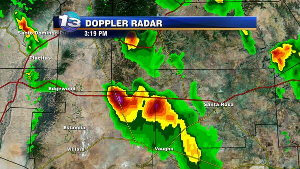Two storms getting ready to merge over Torrance county. The cell on left has history of golf ball sized hail. #nmwxpic.twitter.com/fyshrciziu