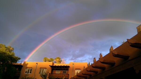 Great looking double rainbow @Bishops_Lodge tonight. Thanks to Patrick Tolen for passing it on. #nmwxpic.twitter.com/XuchaQFhFC