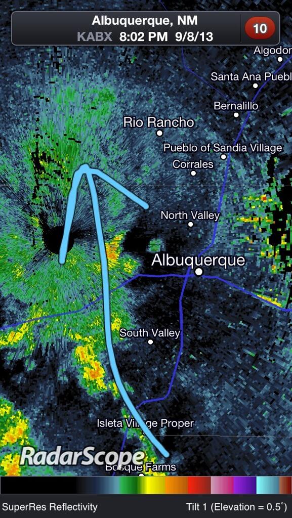 Most of the storms heading west of #ABQ metro. But look for big time increase in storms Tue & Wed. #nmwxpic.twitter.com/wPNbrqy5cM