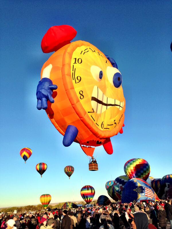 Tic Toc rising over the field @balloonfiesta Park. Perfect morning for ballooning. #nmwxpic.twitter.com/X5NZrDtbsq