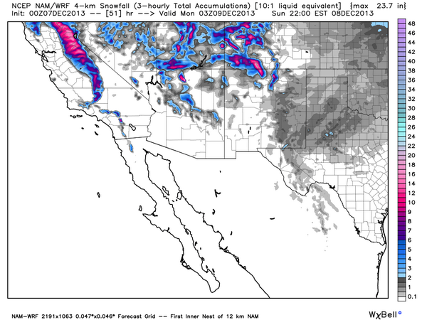 Model (NAM) jives very well with winter storm warning. 12" possible #Colorado San Juans & #NM Sangres. #cowx #nmwxpic.twitter.com/lRUNlqTckB