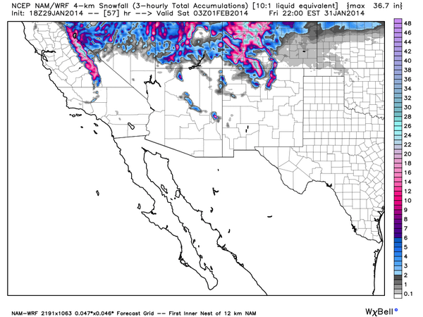 Check out the WRF forecast for this first round of snow thru Fri. If this pans out it would be huge! #nmwx #powderpic.twitter.com/eb4GhfMXQY
