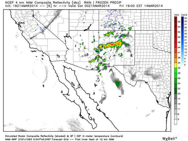 Here is the simulated radar for this evening. Our best shot at rain in #ABQ metro now-midnight. #nmwxpic.twitter.com/PfjkBBDKo2
