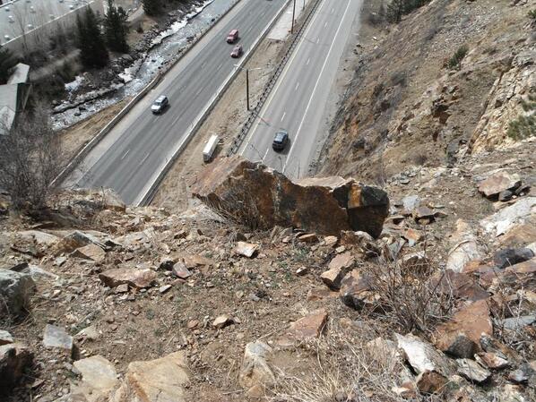 Whoa! RT @ColoradoDOT: Photo of the precarious rock causing the #I70 Twin Tunnels full closure currently in place!pic.twitter.com/FTtThpaDkC