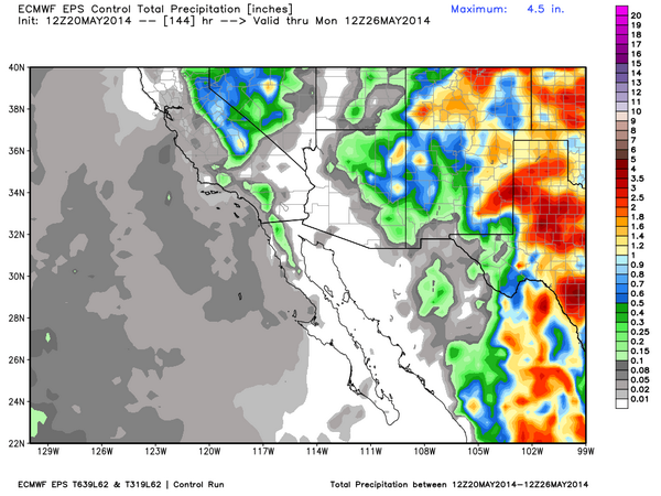 Check out model projections for our incoming storm. Broadly the east could pick up 1"-2" of rain thru Mon. #nmwxpic.twitter.com/bLrydRSkUC