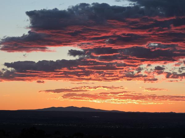 Sunset in #ABQ tonight. Mt. Taylor on the horizon. Great shot by Renny Rozzoni. #nmwx #sunsetpic.twitter.com/P5311LIf8I