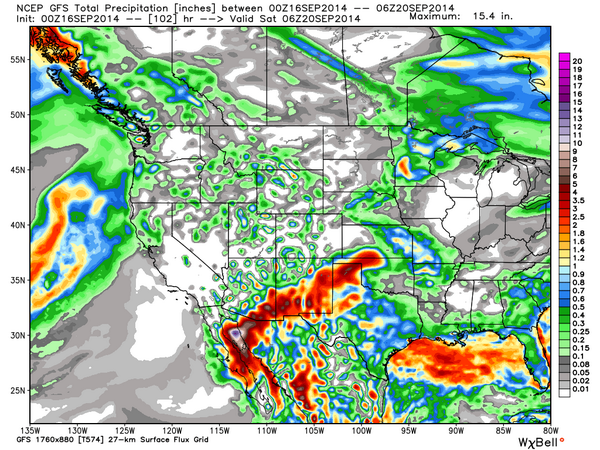 Latest GFS is in. Widespread 3"-5" rain totals through Fri for southern/central #NM. #Odile #nmwxpic.twitter.com/VF2cxgnEij